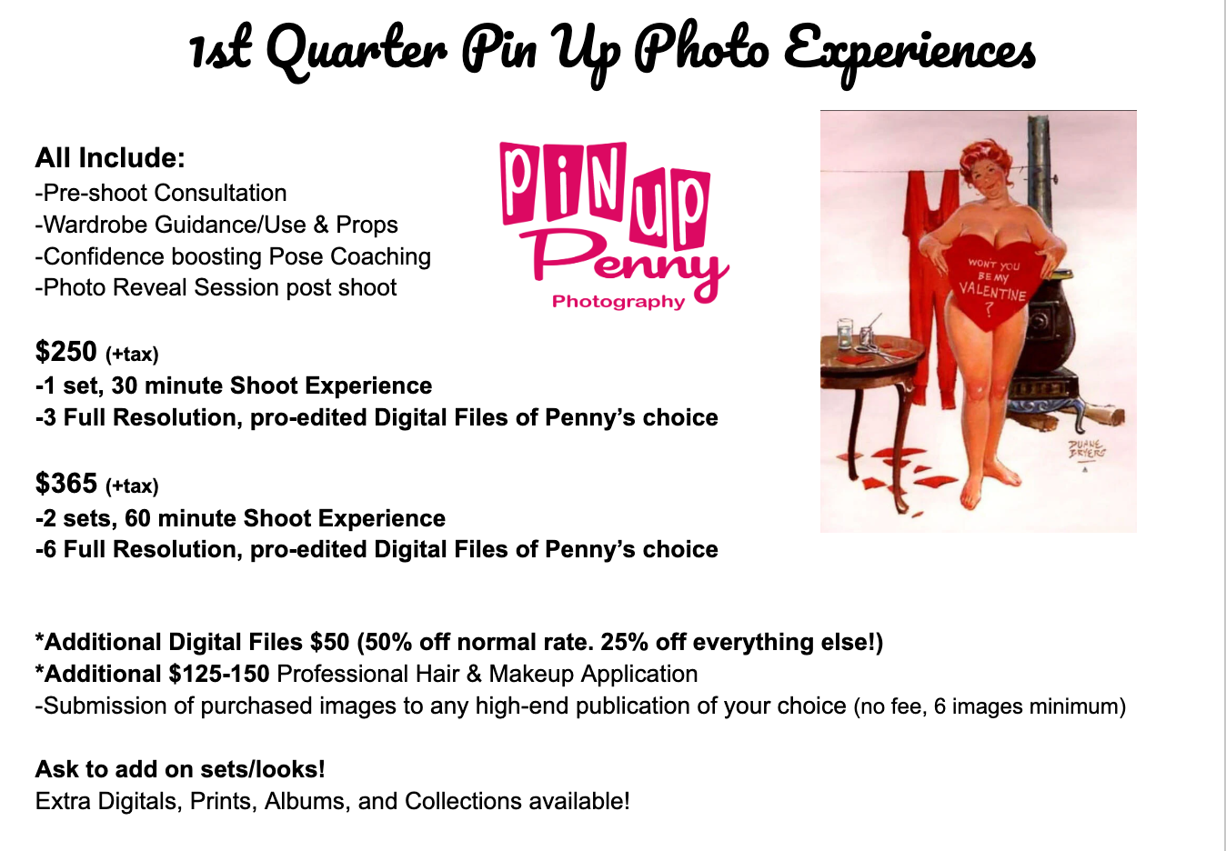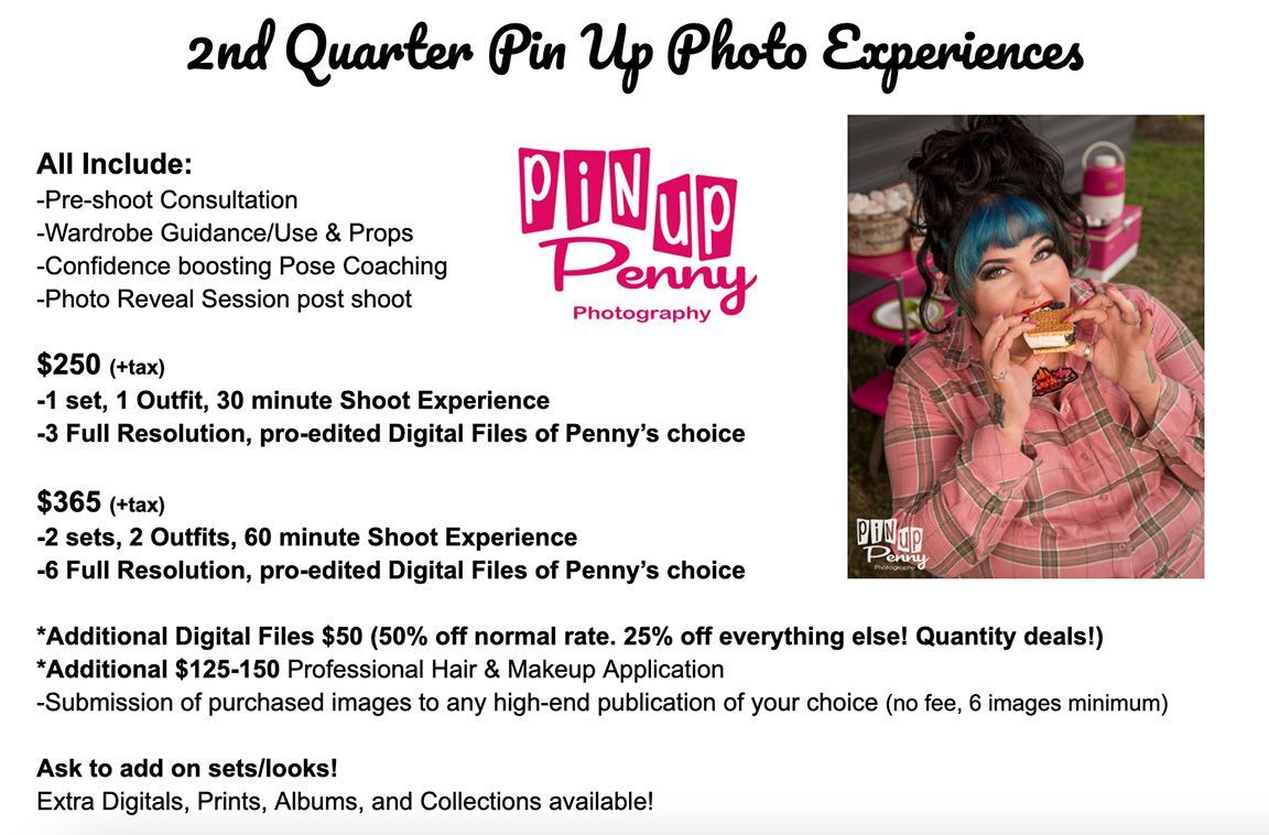 -Photo Shoot time w/Pin Up Penny with confidence boosting pose coaching