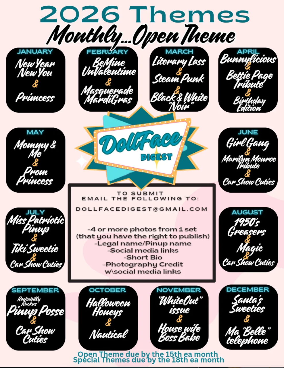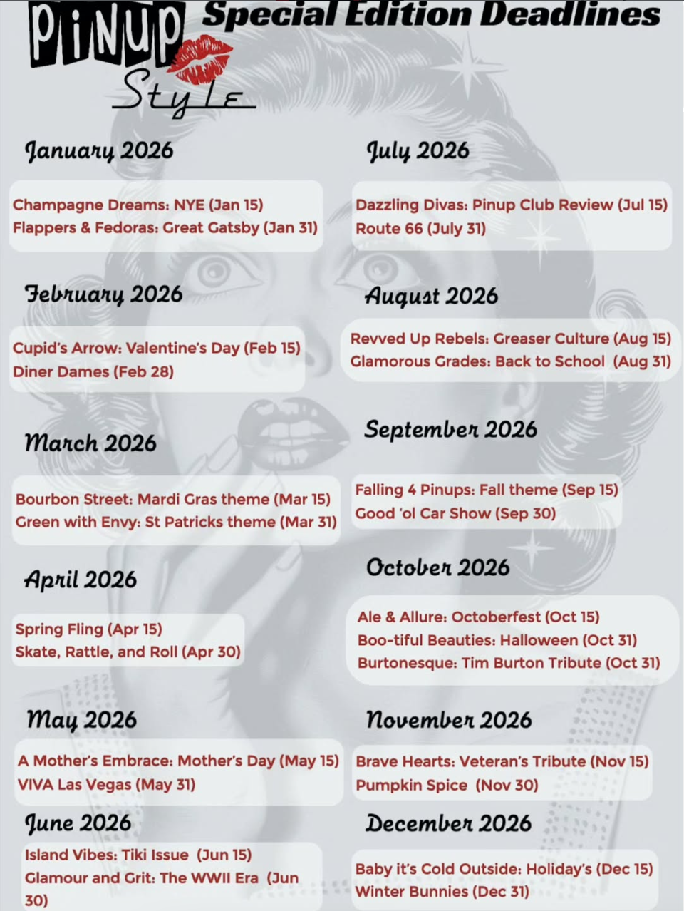 Additional option to submit to Rocket Magazine's December Holiday Issue, if you chose! (No additional cost! Must provide pin up name, bio, and purchase own issue copies.)