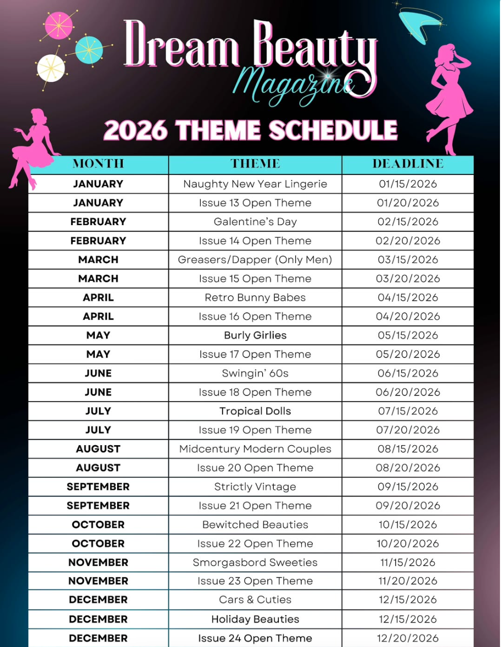 Additional option to submit to Rocket Magazine's February Issue, if you chose! (No additional cost! Must provide pin up name, bio, and purchase own issue copies.)